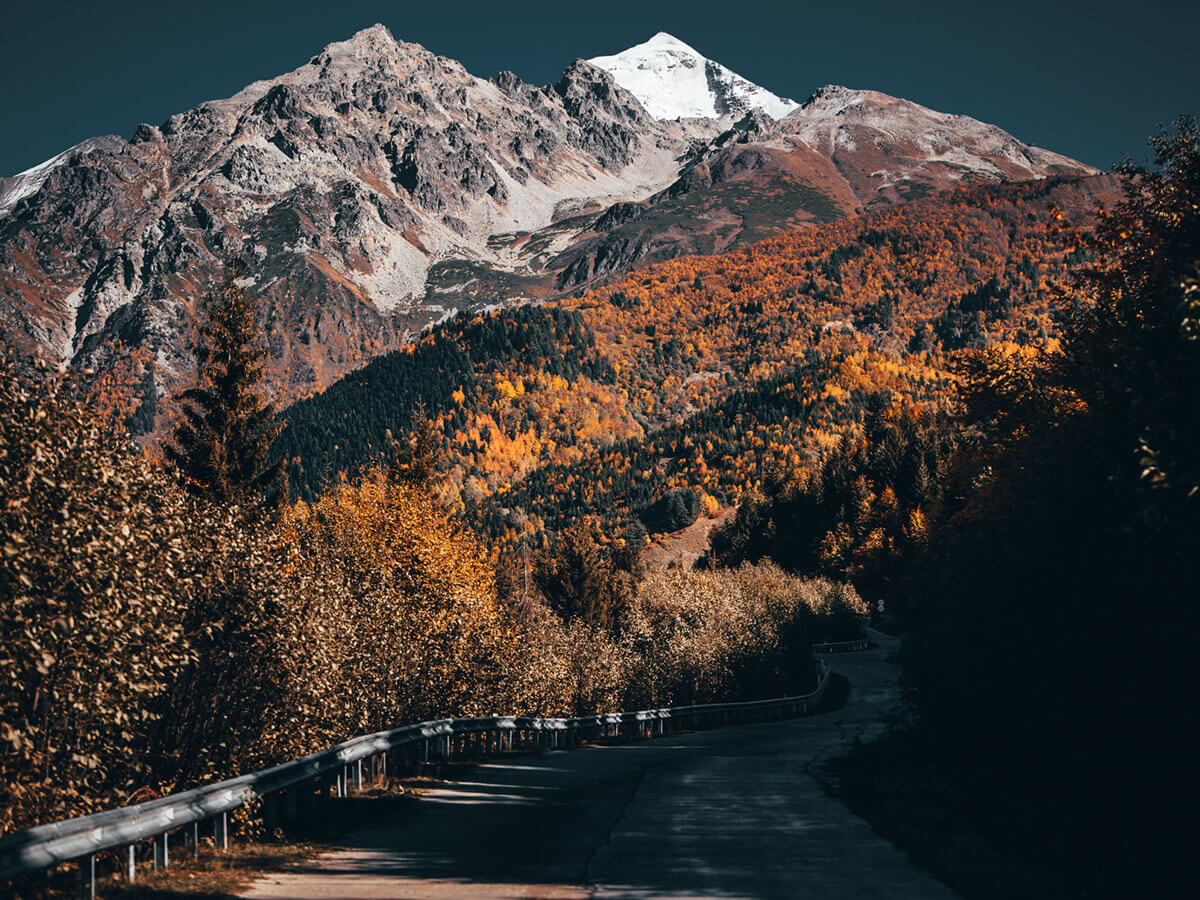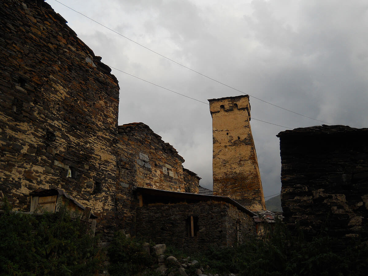 Our journey continues to the Inguri Gorge. The Love Tower, village Ushguli (meaning ″Fearless heart″) at 2200 m, the towers erected like mountain guards, Shkhara Mountain with nine tops at 5195 m and the temple of Our Lady ″Lamaria″ (X c.) erected on the background of Shkhara Mountain, seeming to be built on the threshold of eternity.