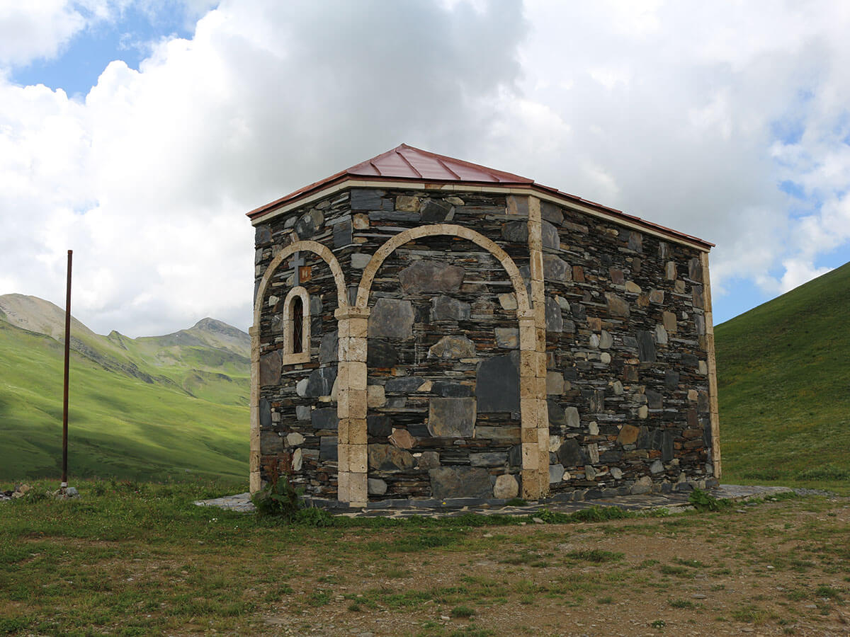 The Nakerala Pass at an altitude of 1200 metres. St. George Curch on Tskhrajvari Pass, at an altitude of 1500 m.