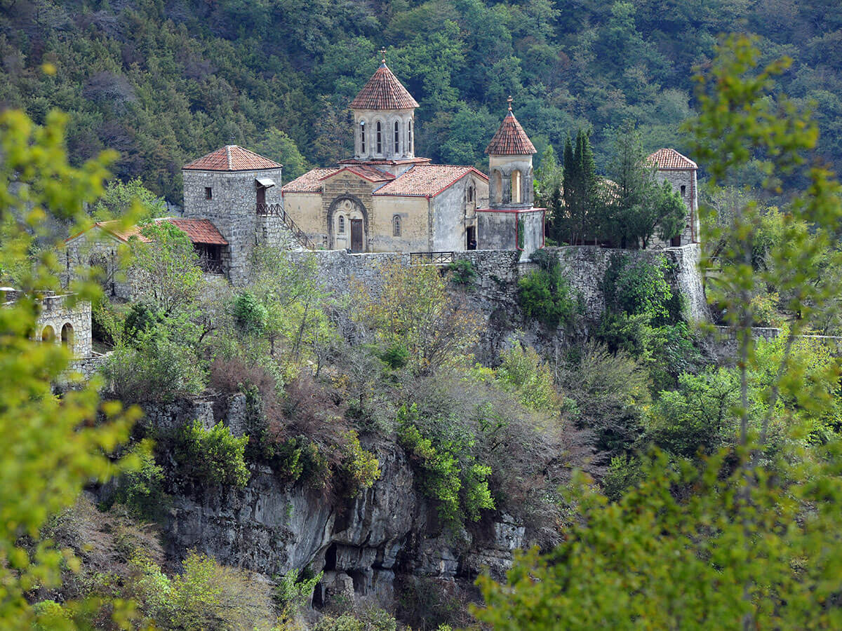 Motsameta, the monastery named after Argveta princes, brothers David and Constantine, standing on the peninsula in the gorge of Tskaltsitela River, near Kutaisi.
