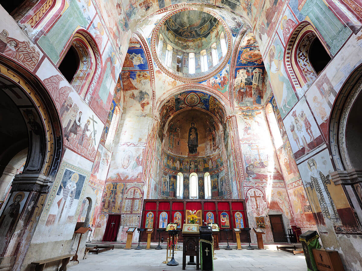 Gelati Monastery and Academy – a medieval spiritual, cultural and educational centre, founded in the 12th century by King David Agmashenebeli, the most renown king of Georgia. The central church is the Cathedral of Our Lady, while the other church is of St. George. There is also a two-storey Cathedral of St. Nicholas.